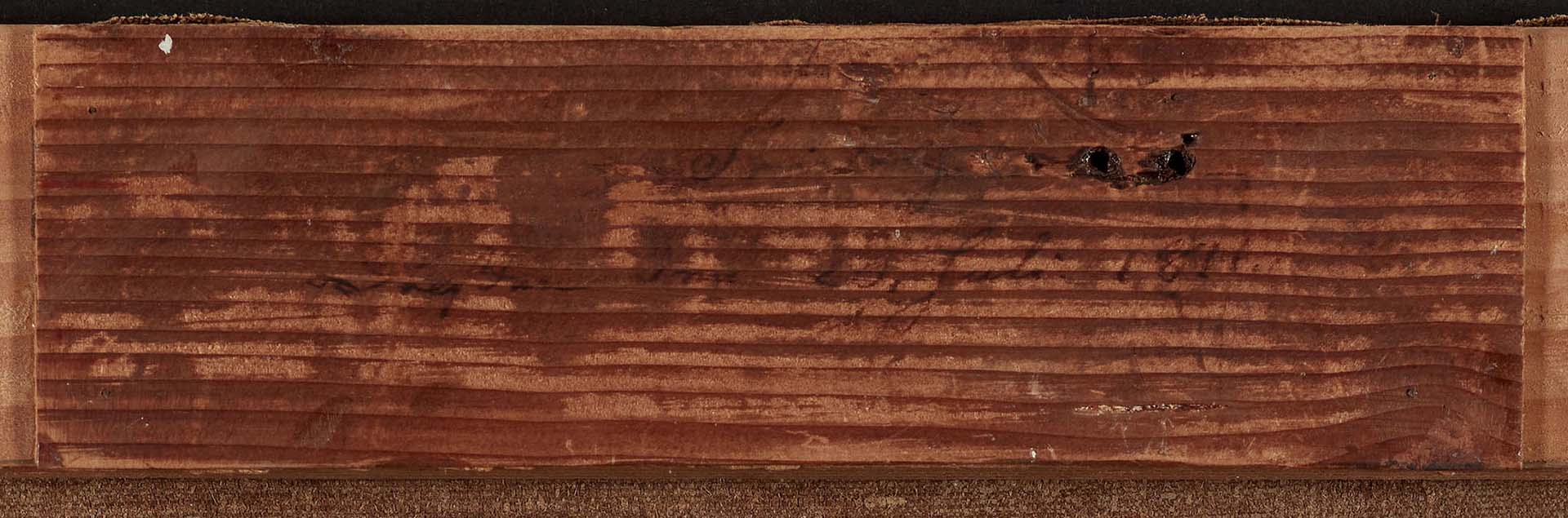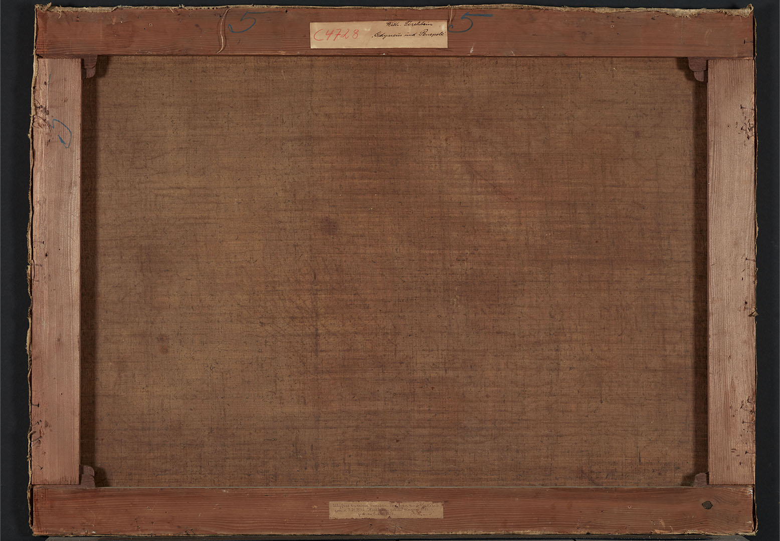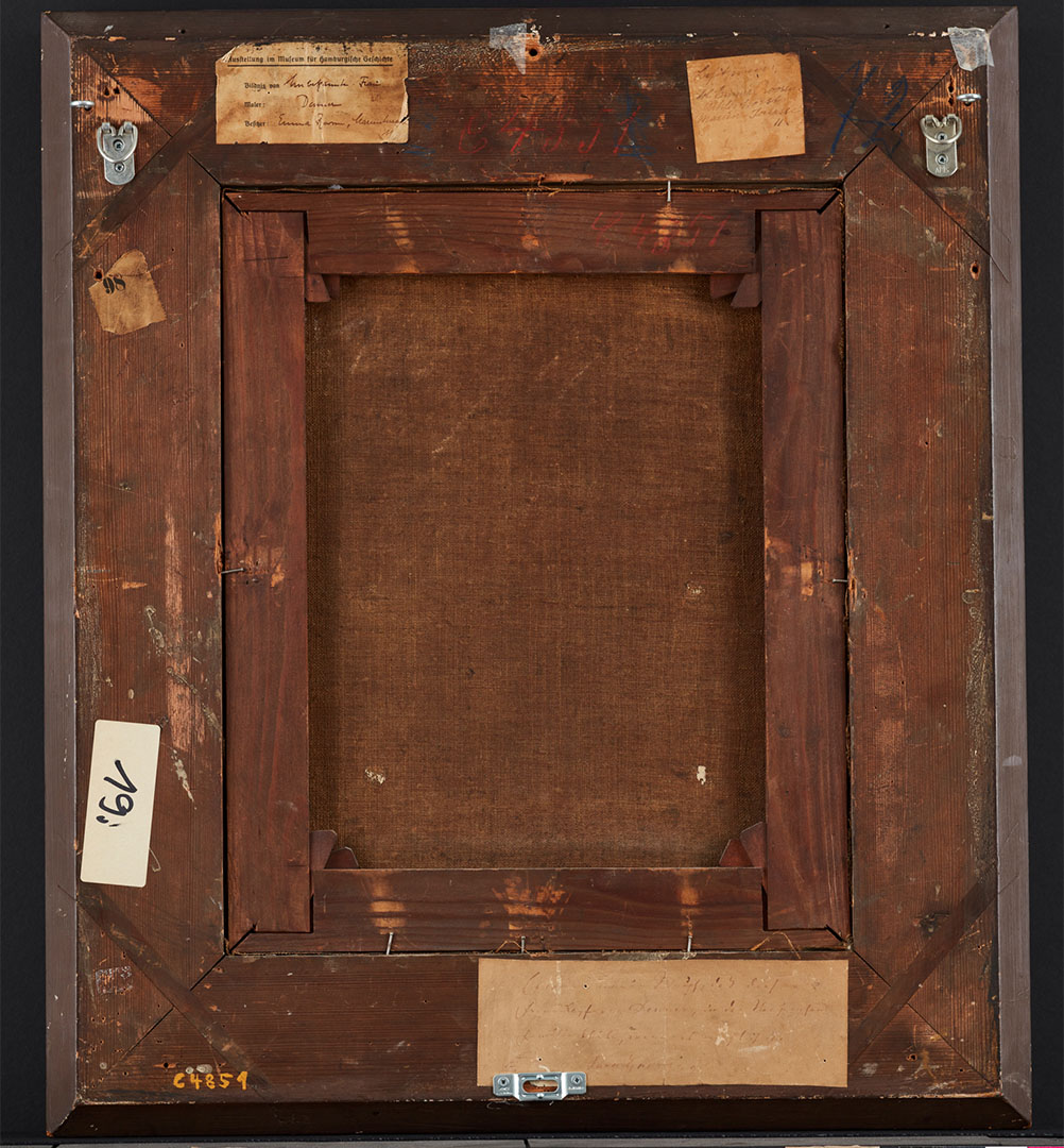 Nach 1945 hat das Gemälde einen neuen Keilrahmen erhalten. Von dem alten zeugt nur noch ein Stück Holz mit der Aufschrift "Friedrich Dresden den 20. Juli 1811".